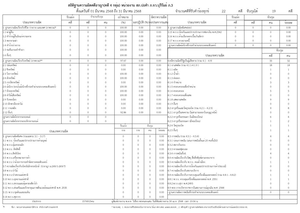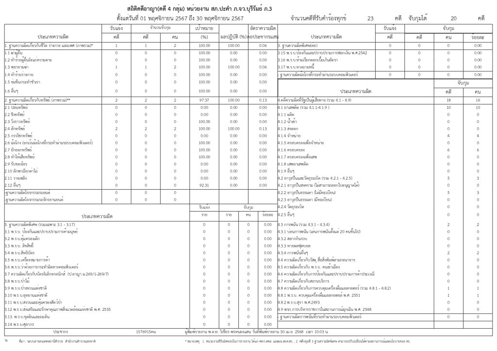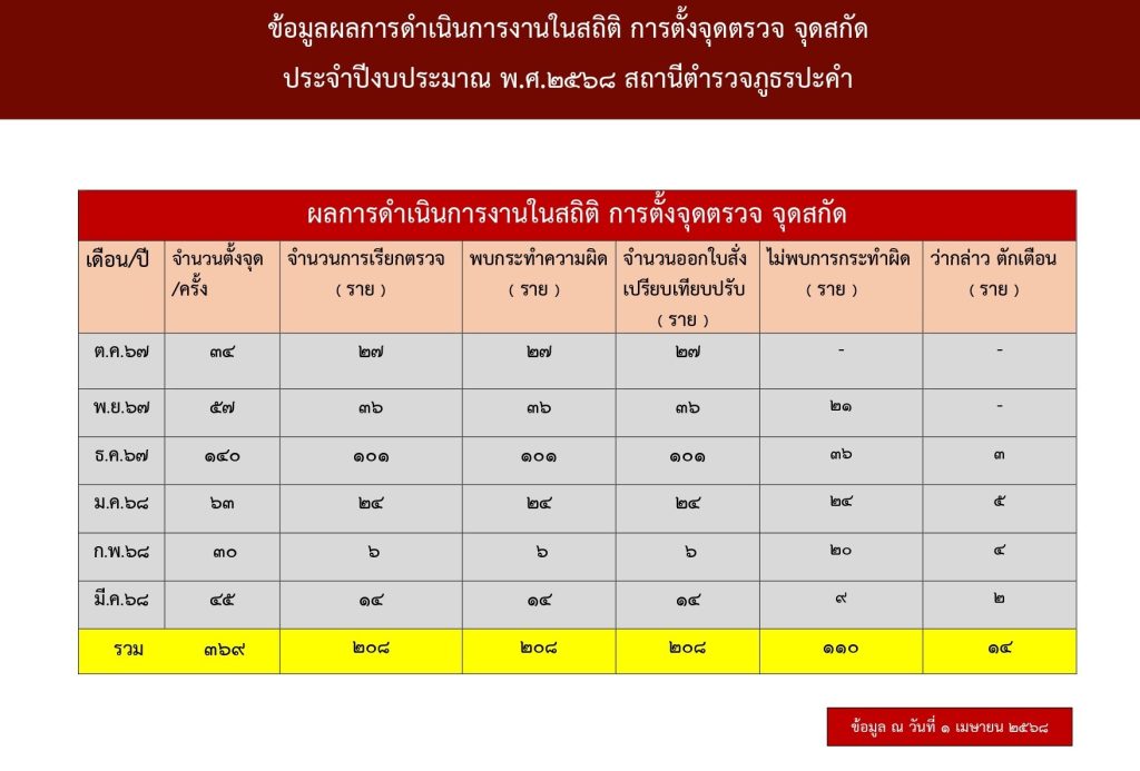 ข้อมูลผลการดำเนินการงานในสถิติ การตั้งจุดตรวจ จุดสกัดประจำปีงบประมาณ พ.ศ.๒๕๖๘ สถานีตำรวจภูธรปะคำ ( PDF )