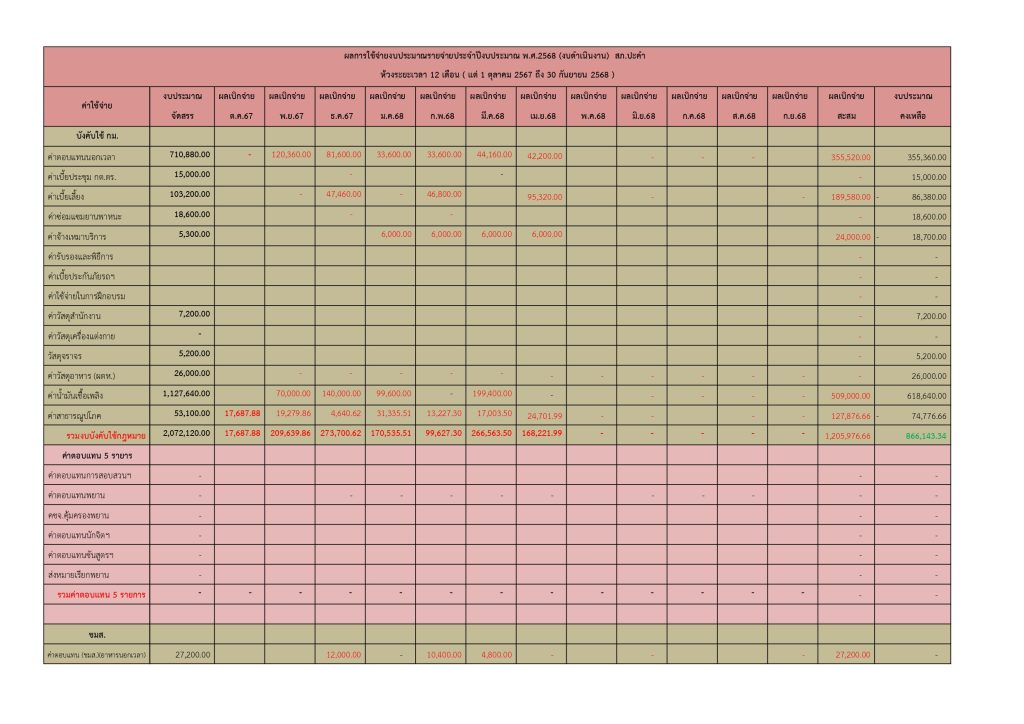เเผนการใช้จ่ายงบประมาณปี 2568 ( EXCEL )